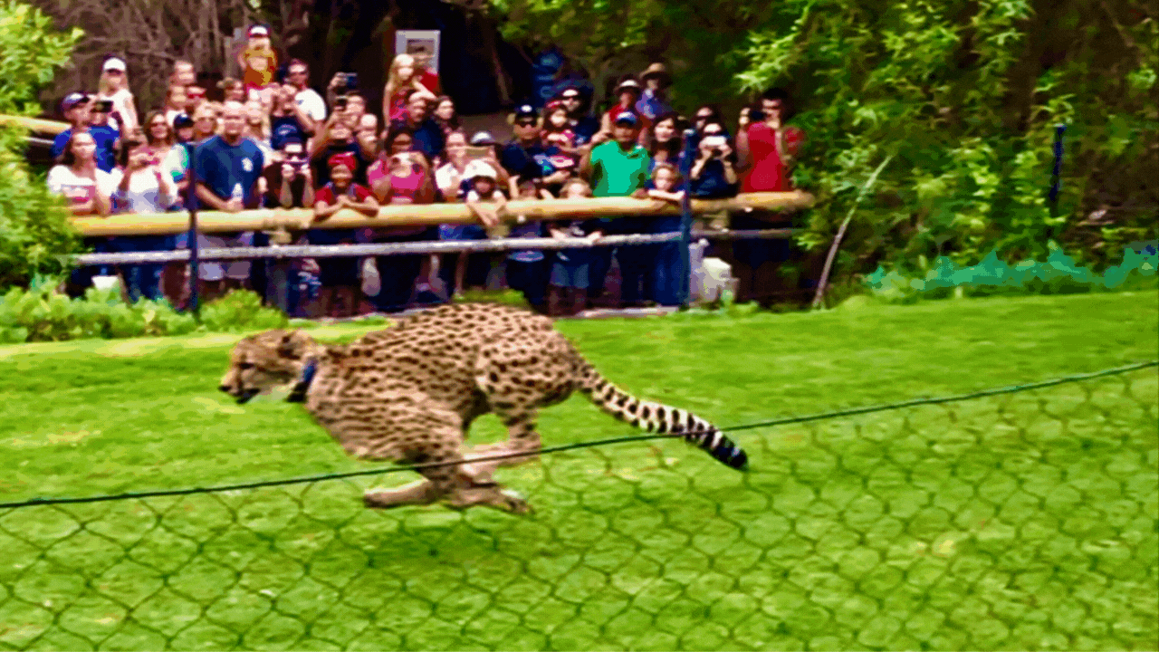 Cheetah's like Ruuxa can reach speeds of up to 70 MPH... The San Diego Zoo Safari Park is the only institution allowed to run cheetah's in this fashion.